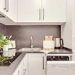 部屋にはコ-ヒ-/紅茶メ-カ-,ライティングデスク と座席を完備し,電子レンジ,電気ポット と冷蔵庫のある器具でいっぱいの台所を含んでいます. この部屋は寄木細工の床があります.
